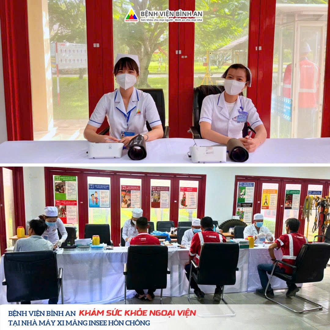 Sau đây là một số hình ảnh Đoàn khám ngoại viện của Bệnh viện Bình An tổ chức khám tại Nhà máy xi măng INSEE Hòn Chông