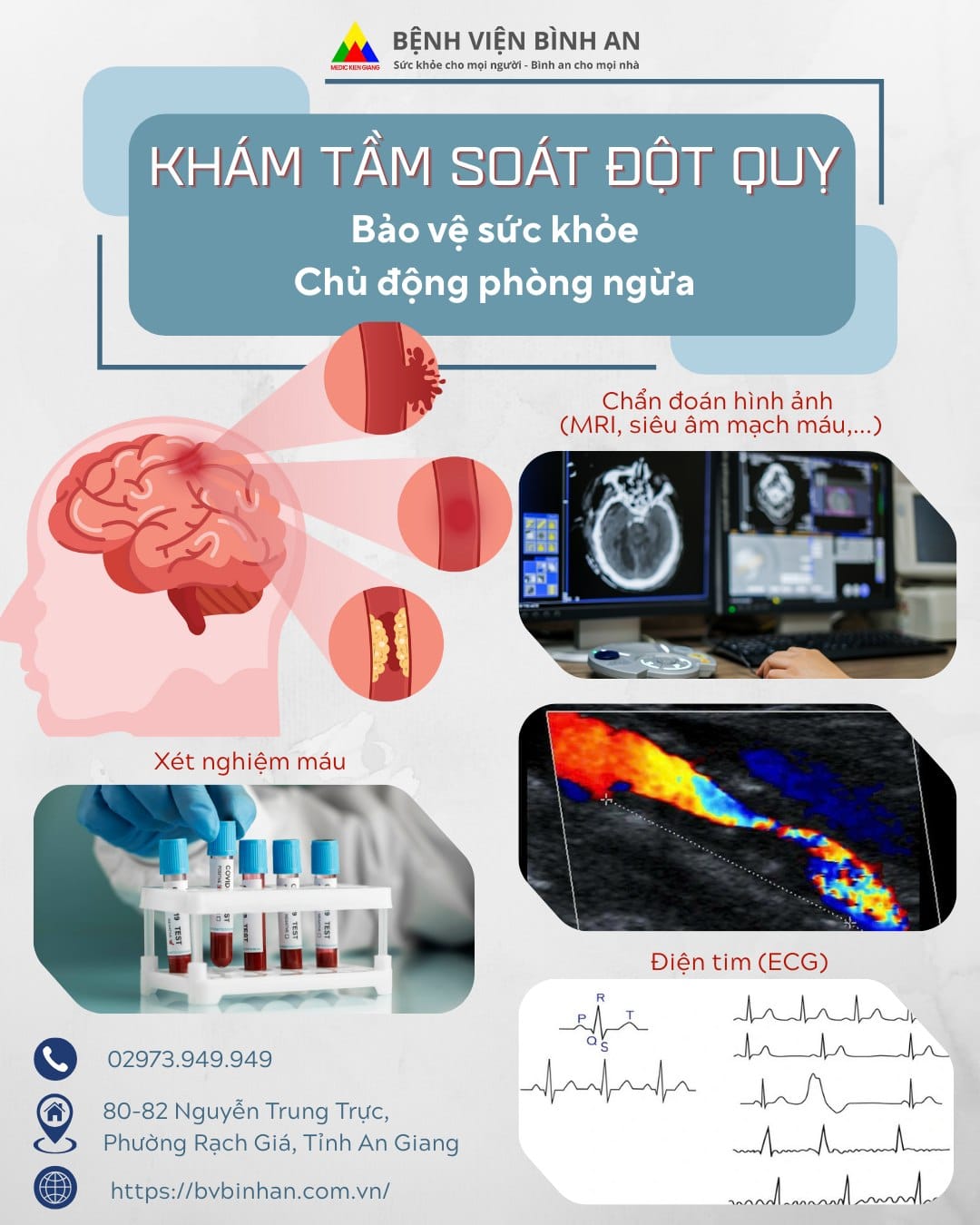 Đột quỵ là nguyên nhân hàng đầu gây tử vong và tàn phế tại Việt Nam. Phát hiện sớm các yếu tố nguy cơ như tăng huyết áp, rối loạn mỡ máu, tiểu đường, hẹp động mạch cảnh hay rối loạn nhịp tim sẽ giúp phòng ngừa và điều trị kịp thời, giảm thiểu biến chứng nặng nề.